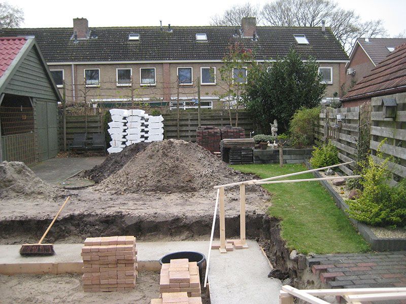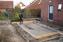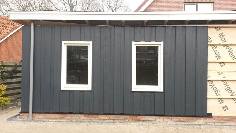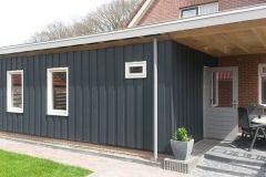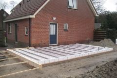 Uitvoering; aanbouw woning, houtskeletbouw.