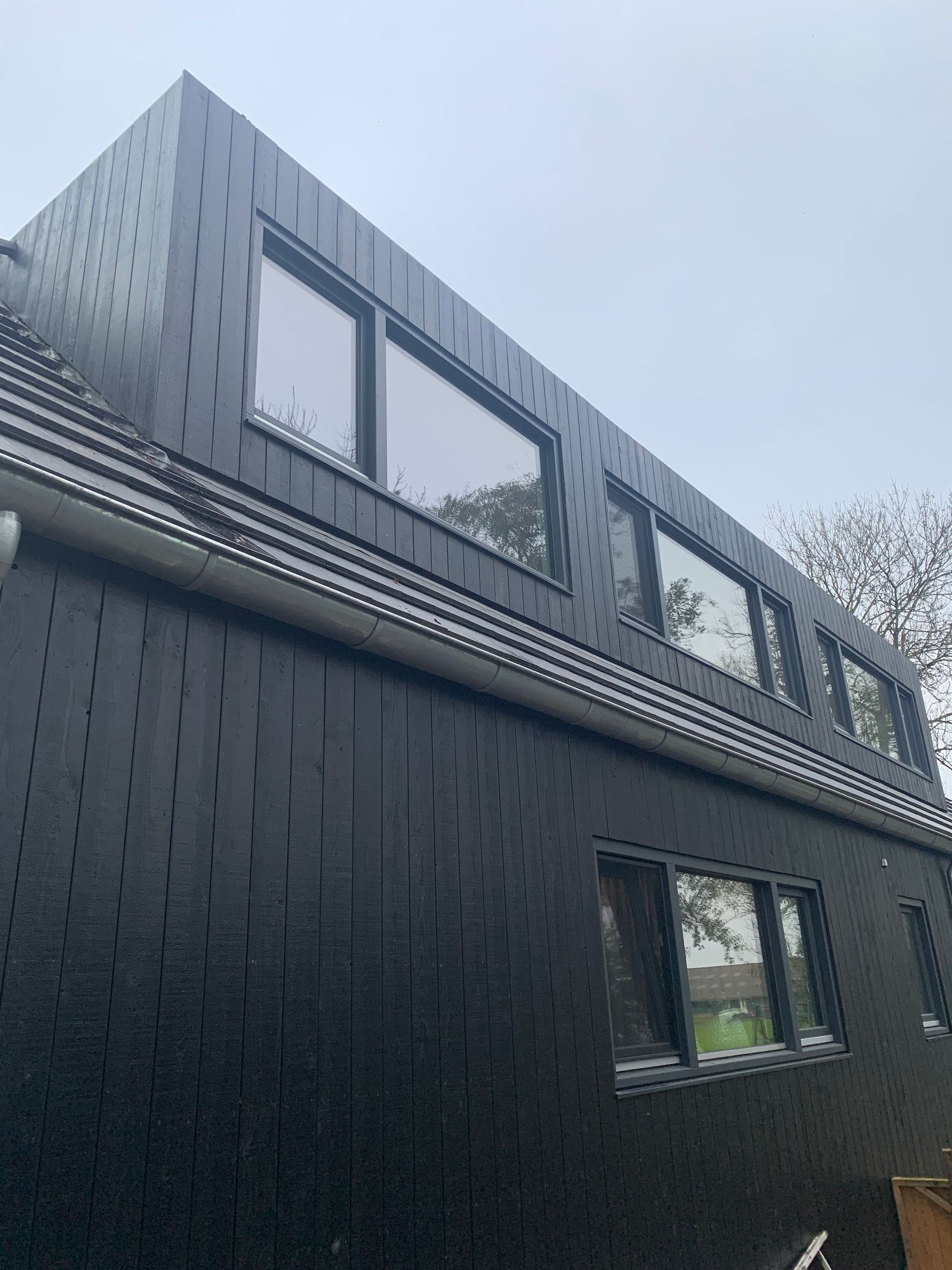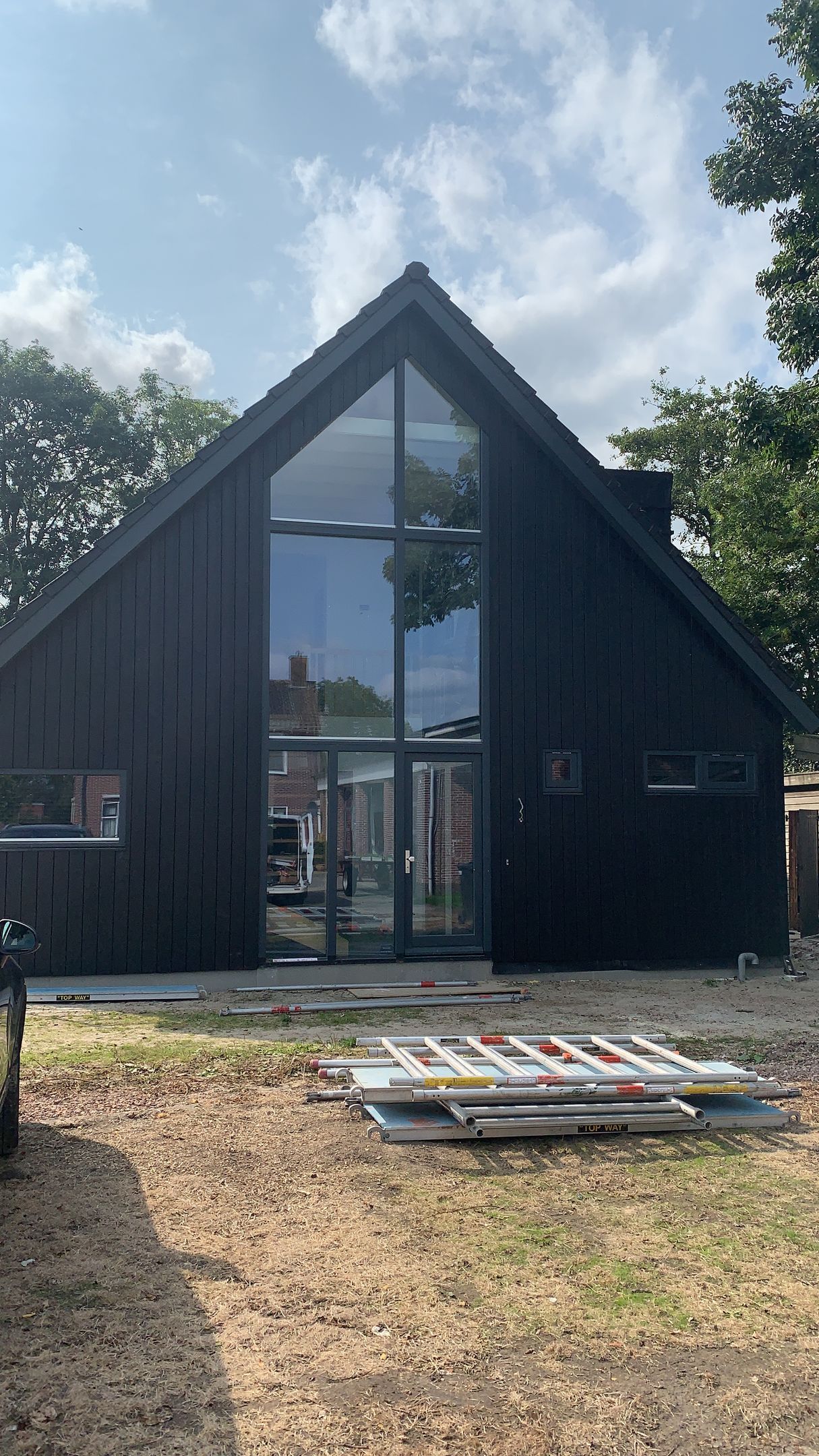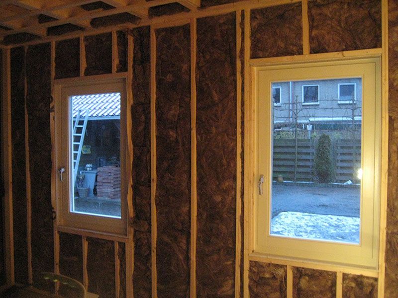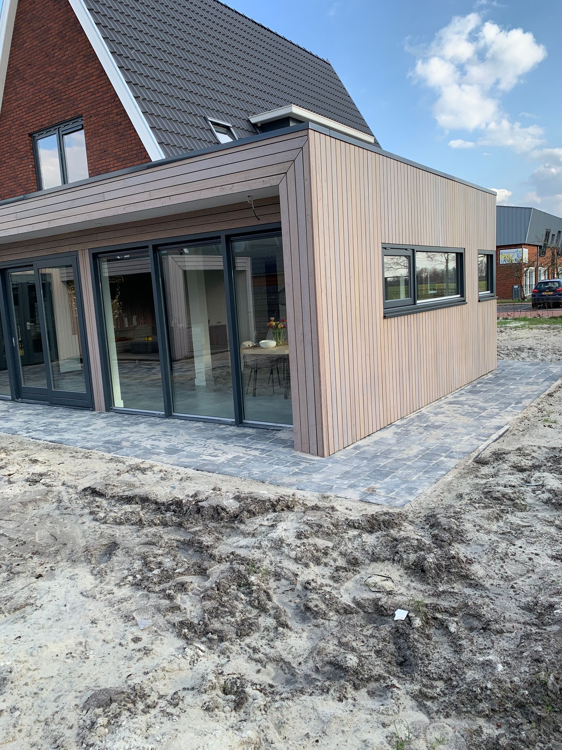 Uitvoering; aanbouw woning, houtskeletbouw.Slaapkamer en douchegelegenheid naar begane grond gebracht in verband met levensbestendig wonen.